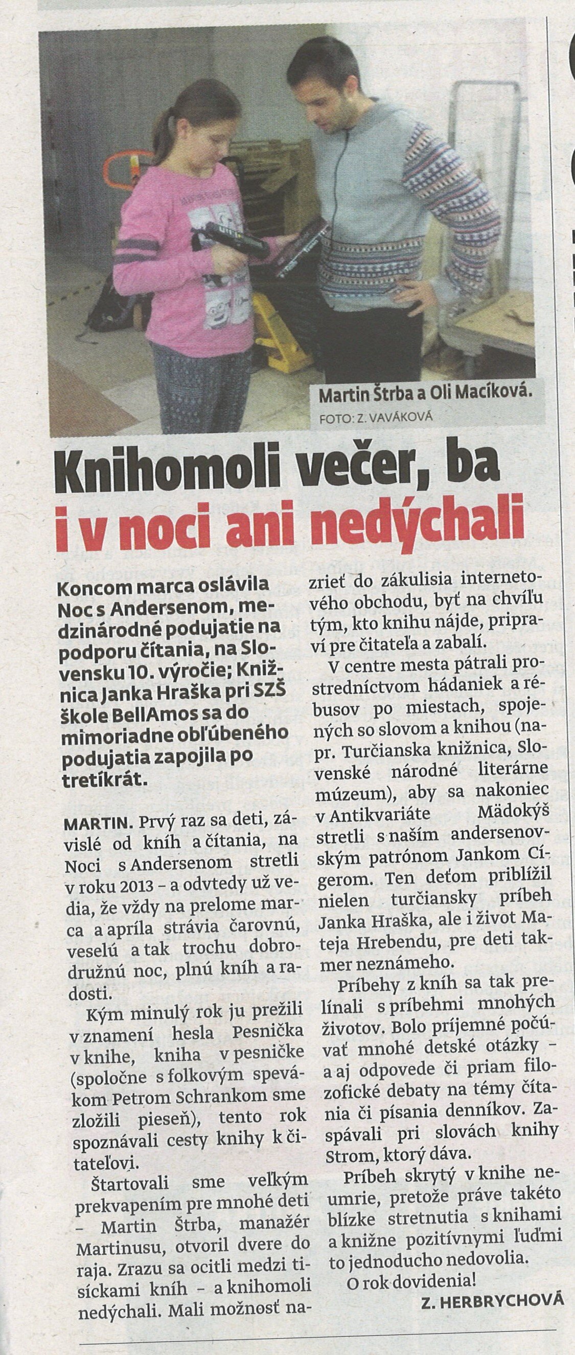 Knihomoli večer, ba ani v noci ani nedýchali (MY Turčianske Noviny, 13/2015)